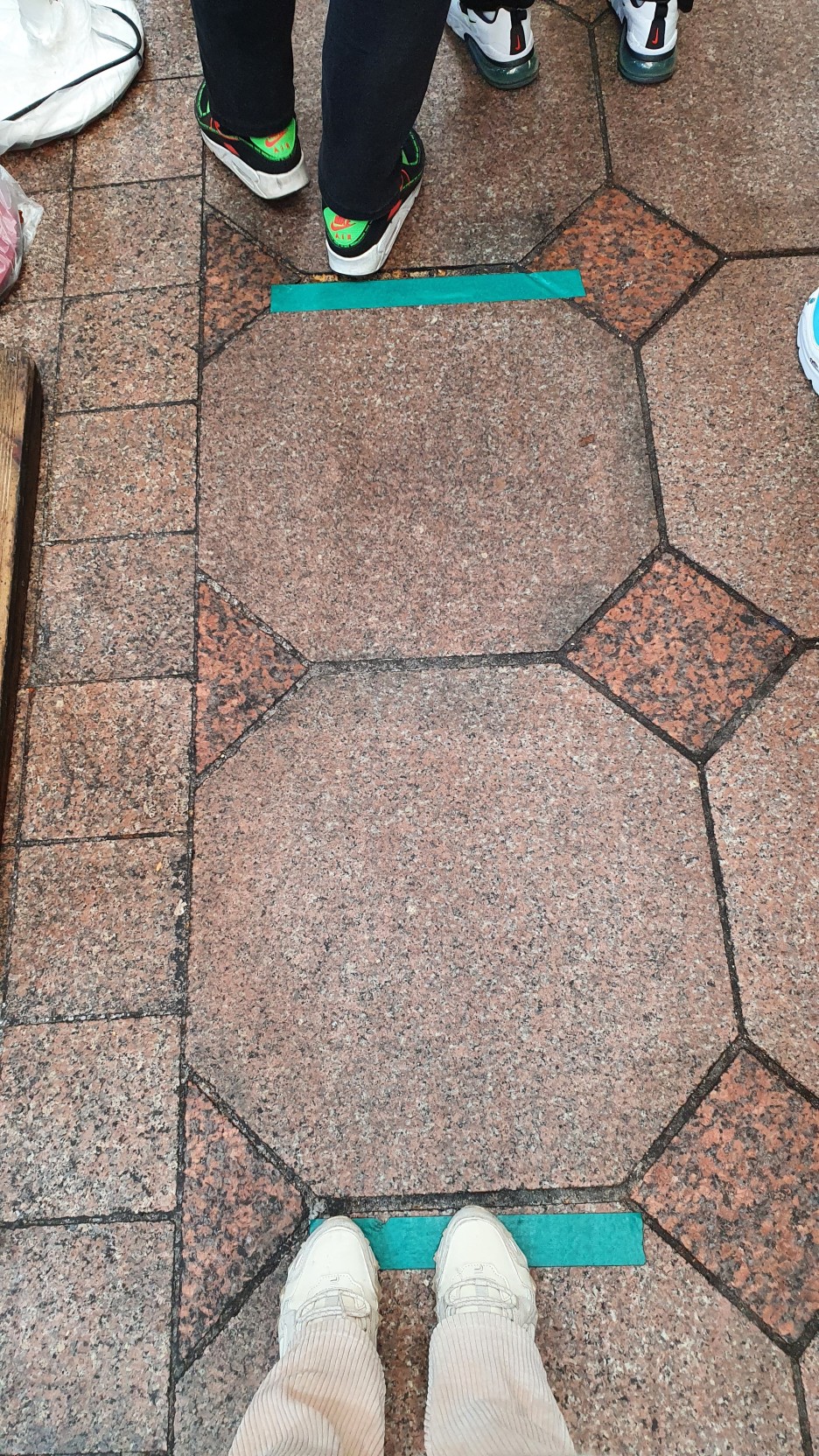 줄도 거리 두기 때문에 바닥에 테이프 거리 만큼 떨어져서 포장을 기다렸어요.ㅎㅎ