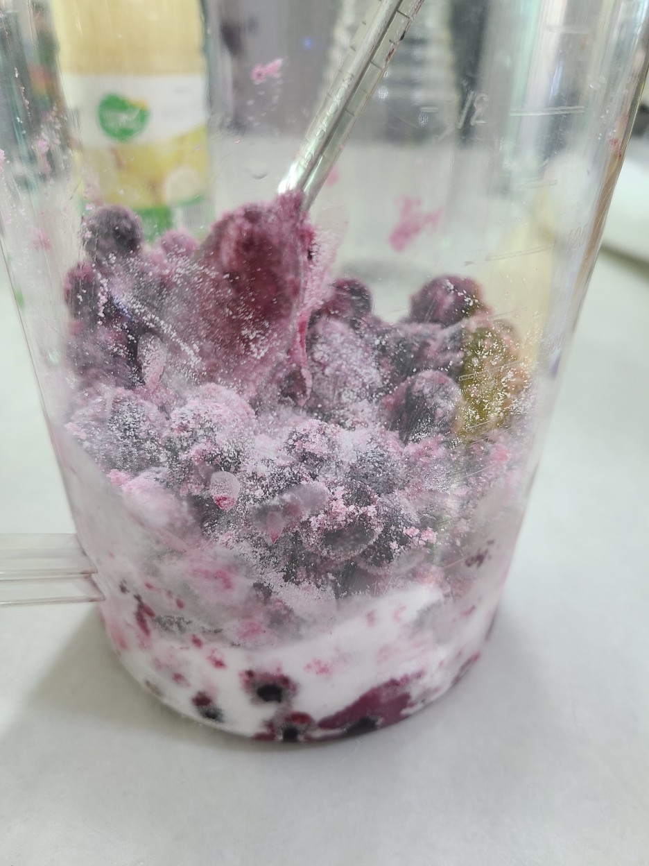 냉동 블루베리랑 자일로스 설탕을 준비했어요.