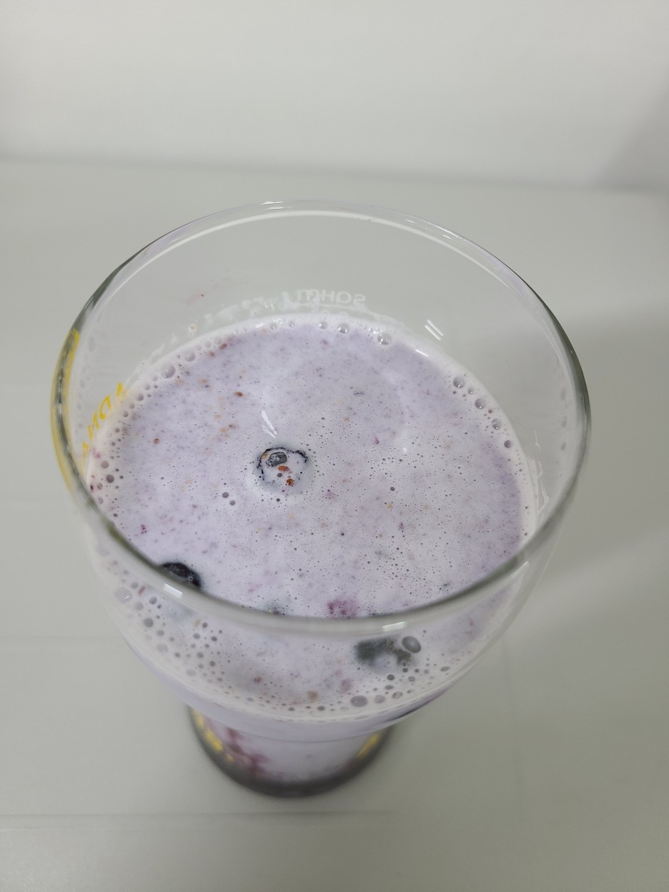 냉동 블루베리를 컵에 넣어 마시면 더욱더 좋답니다.