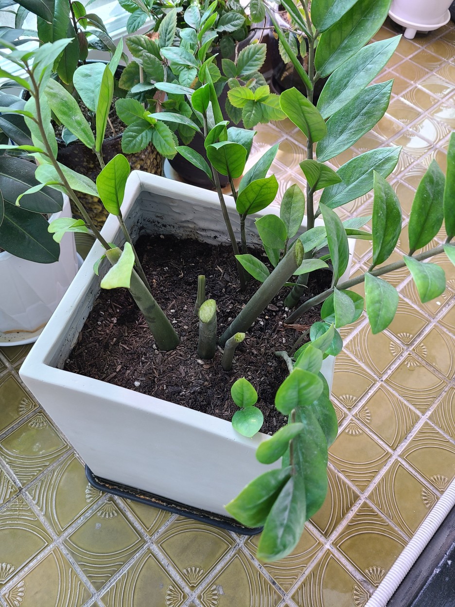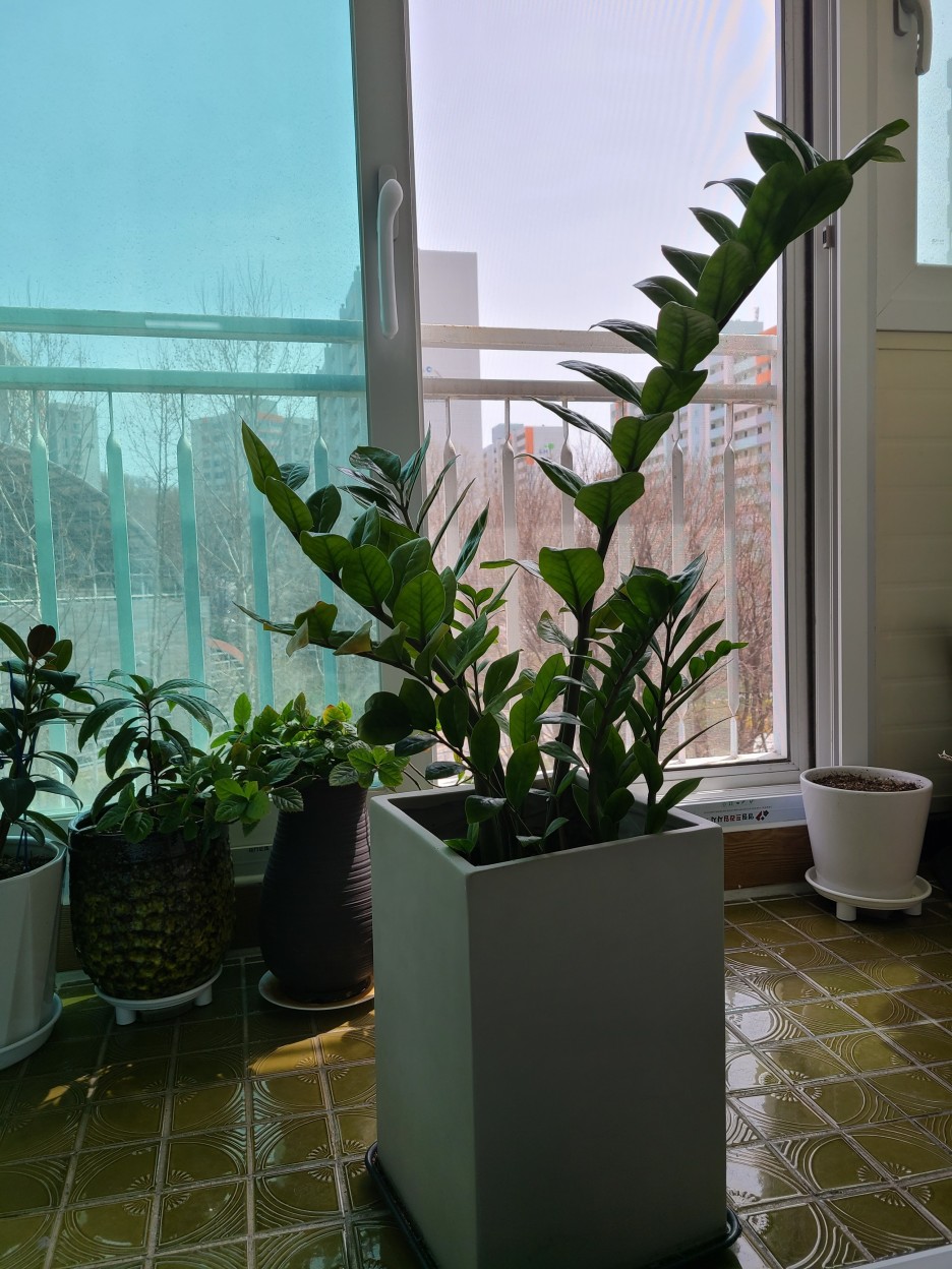 몇 년 전에 작은 금전수 줄기 하나 심어서 이 만큼이나 컸어요.^^