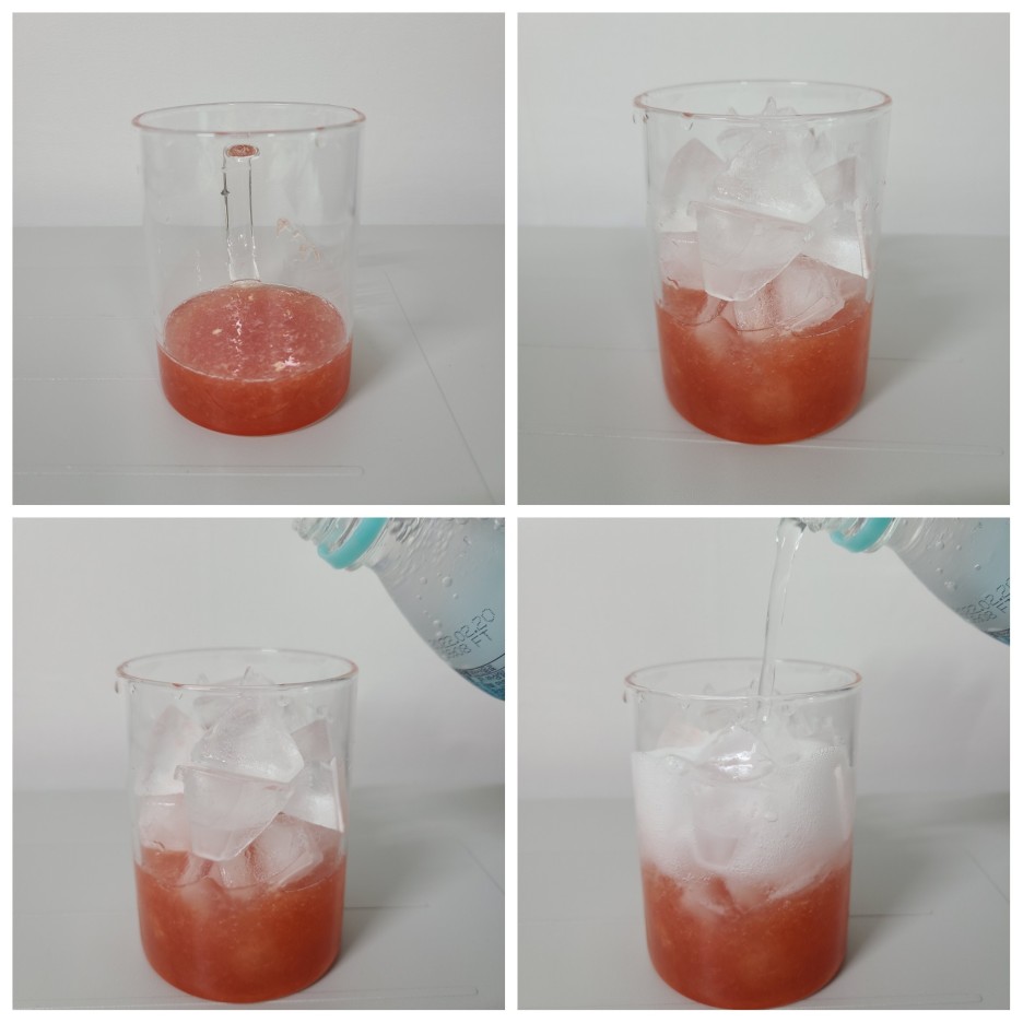 자몽에이드 재료 탄산수, 자몽청, 레몬즙, 얼음 |