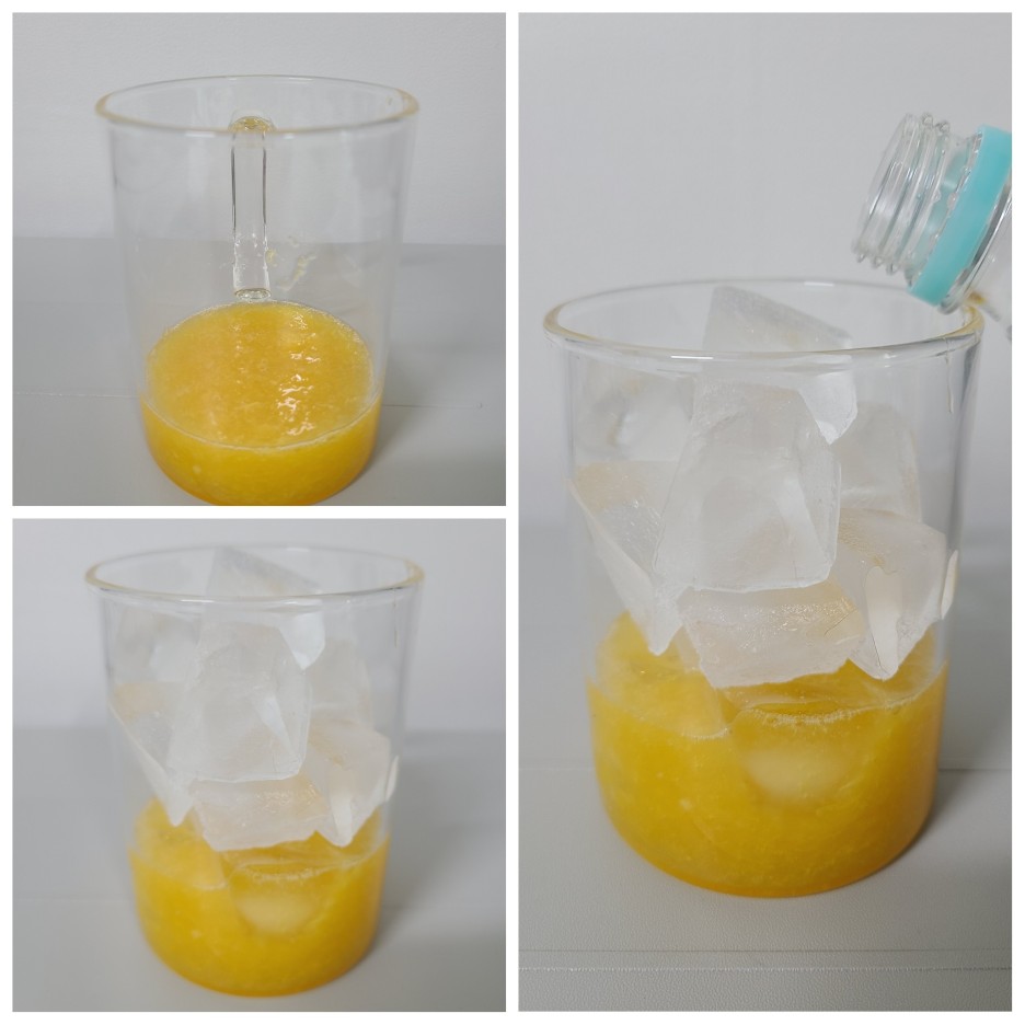 오렌지청 5스푼 + 얼음을 채워주세요.