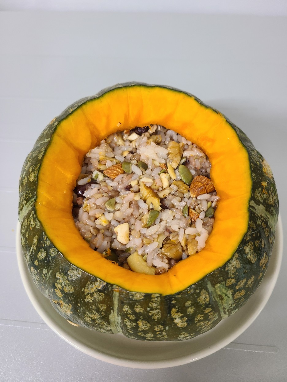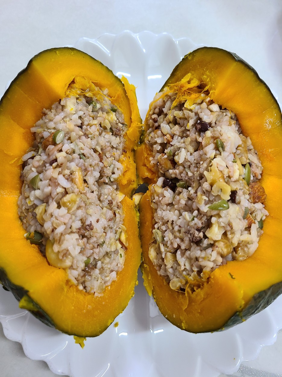 단호박에 달콤한 견과류와 밥이 잘 어울리네요.