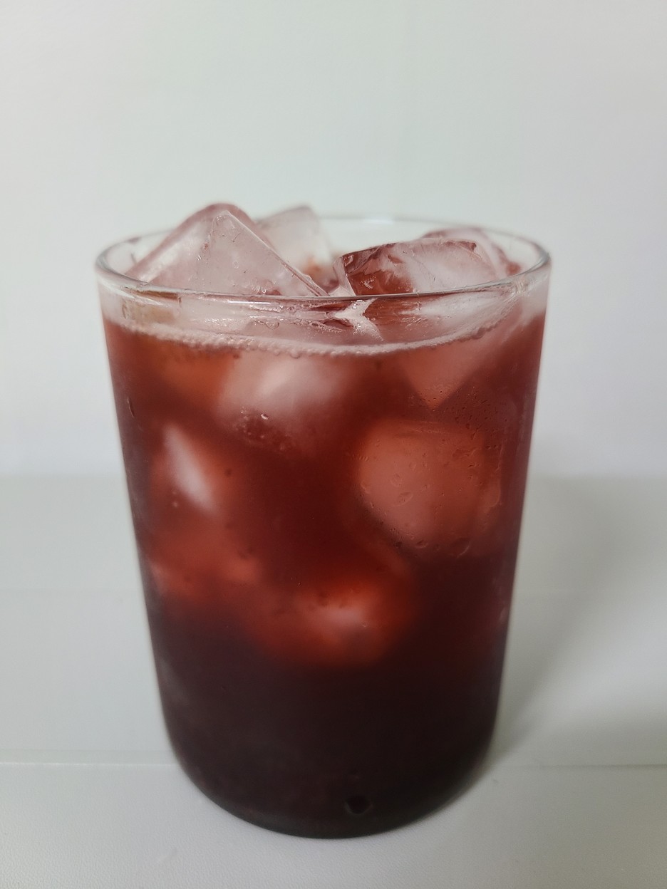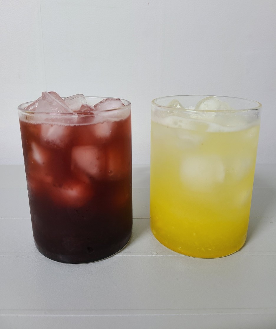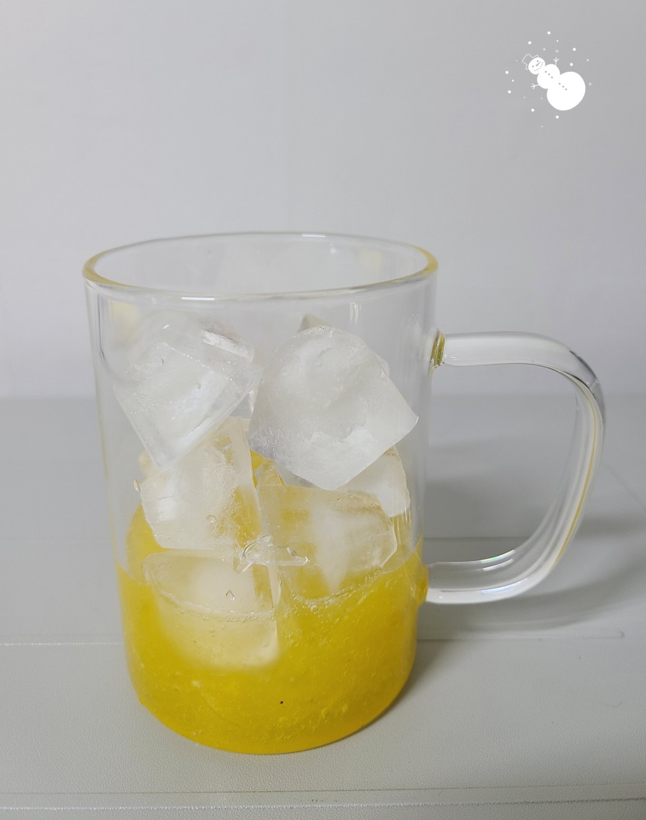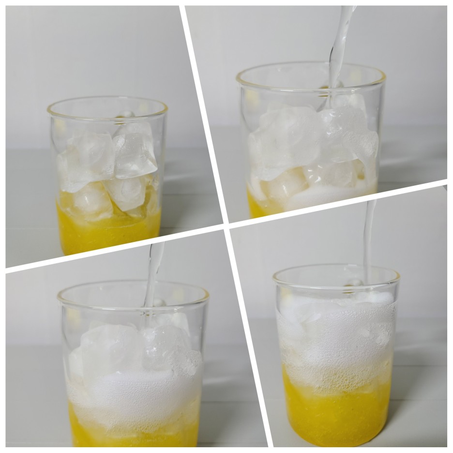 파인애플 에이드 만들 때처럼 얼음이랑 탄산수를
