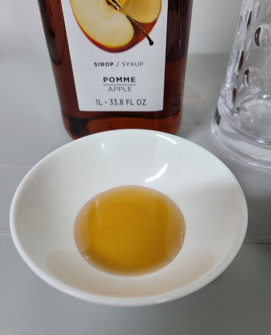 시럽을 한 스푼 덜어봤어요. 달콤한 애플 향이 정말 좋아요!