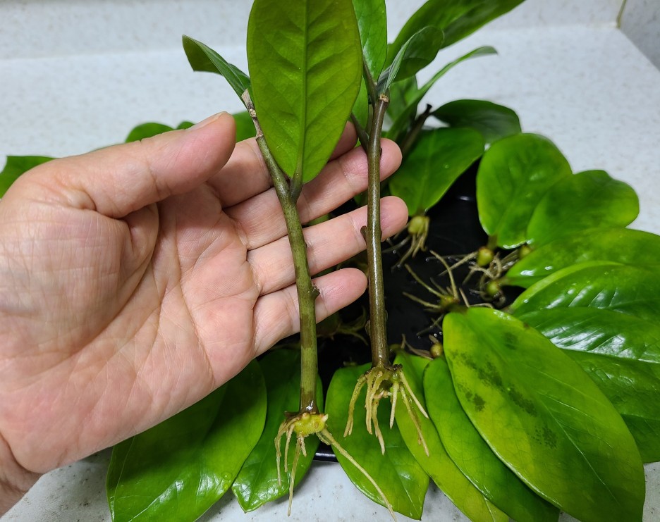 몇 년 전에 작은 금전수 줄기 하나 심어서 이 만큼이나 컸어요.^^ 식목일도 다가오고 화분 정리를 해보려고 해요. 굵은 가지 몇 개 잘라서 꺾꽂이랑 물꽂이를 해줄 겁니다. 가지와 잎을 잘라주었