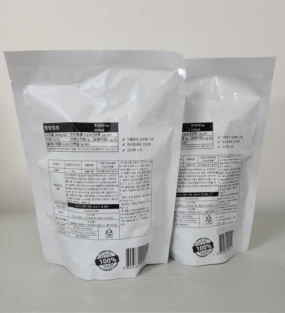 닭가슴살이 거의 60% 가까이 함유된 고단백 간식이랍니다.