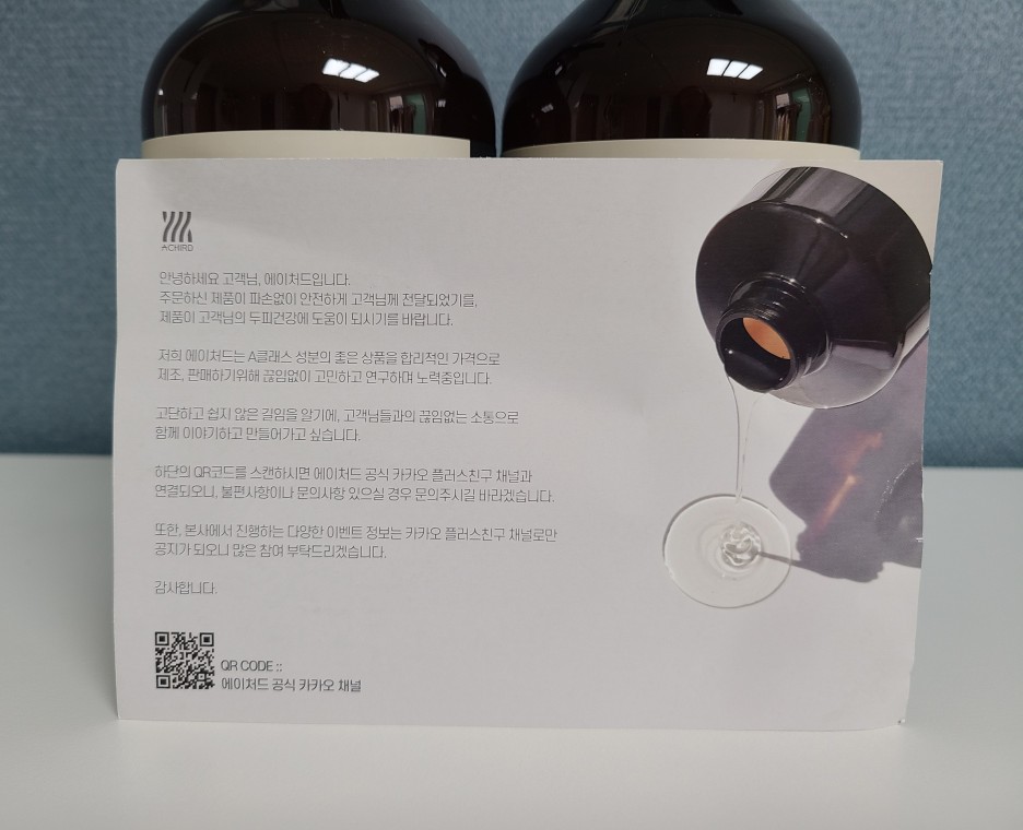 두피 케어와 탈모에 좋은 에이처드 유산균 샴푸를 구매해줬어요.