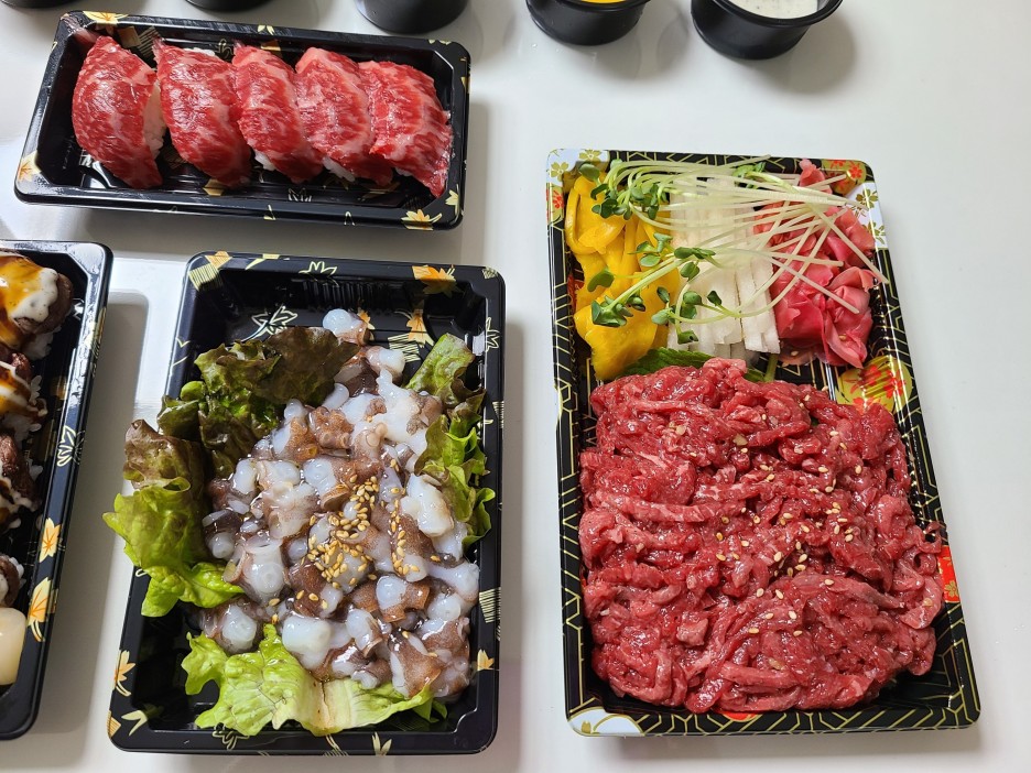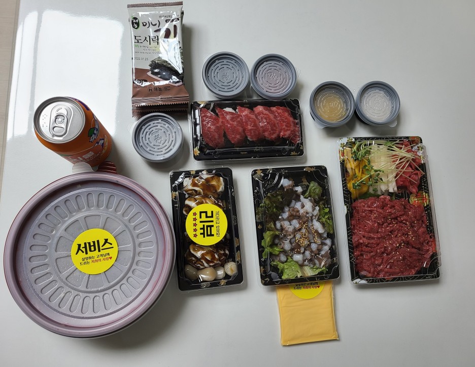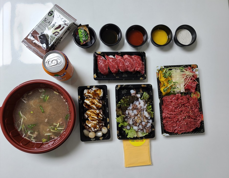 지난 토요일에 애들이 산낙지랑 육회 주문해서