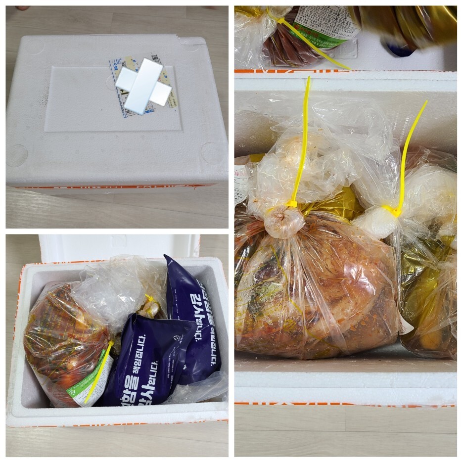 포기김치는 날씨가 더워서 그런지 좀 익어서 왔어요.