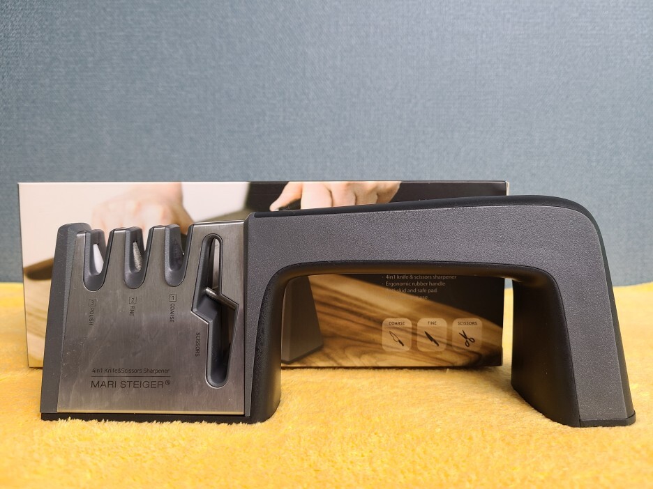 왼쪽 슬롯부터 가위갈기/초벌갈기(텅스텐)/날세우기(숫돌)/날다듬기(세라믹)로