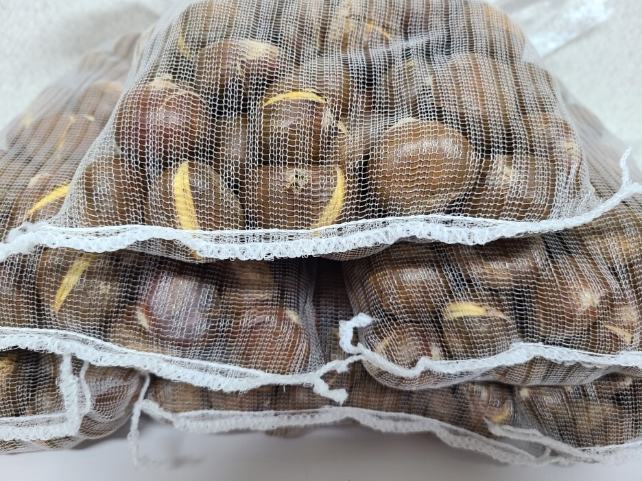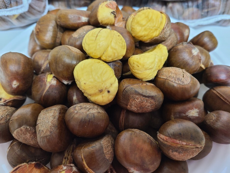 올 해도 밤이 도착했네요. 칼집이 들어간 햇 약단밤이에요.