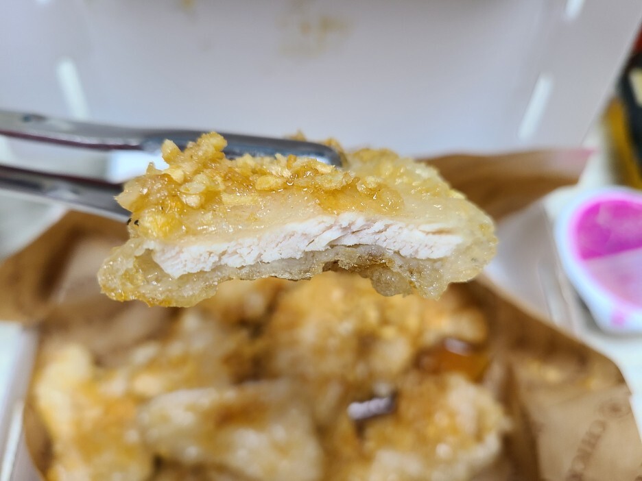 튀김 옷이 살짝 단단한 느낌이 들고, 바삭바삭합니다.