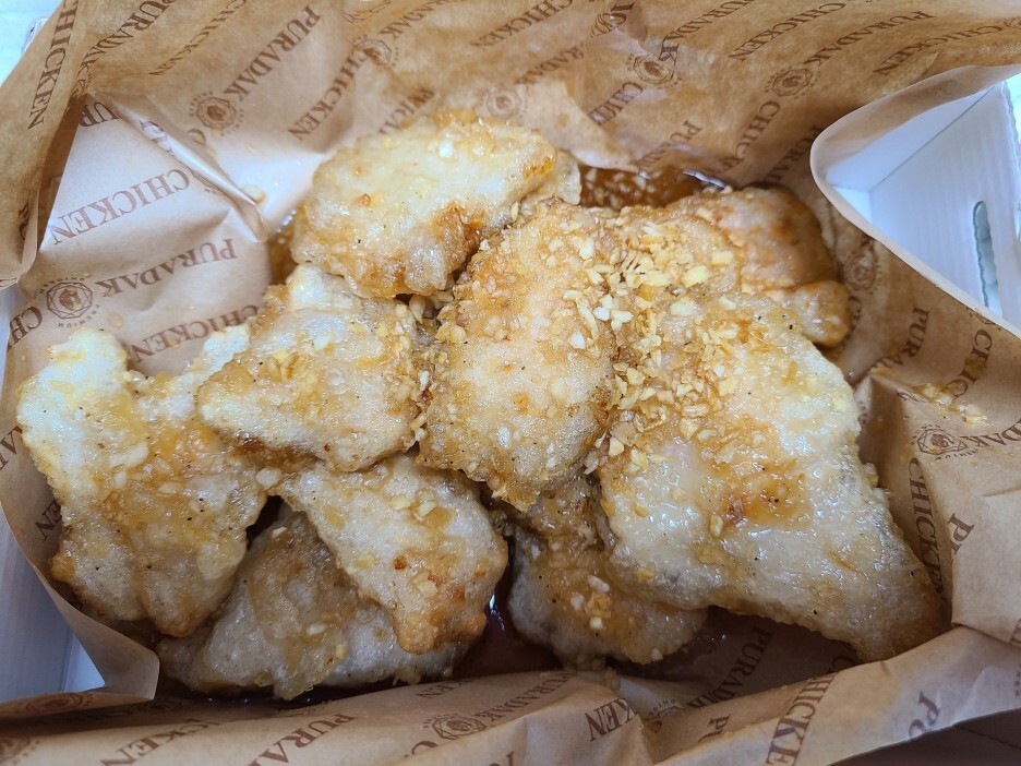 텐더치바로우는 닭가슴살에 다진 마늘이 가득 뿌려져 있고,