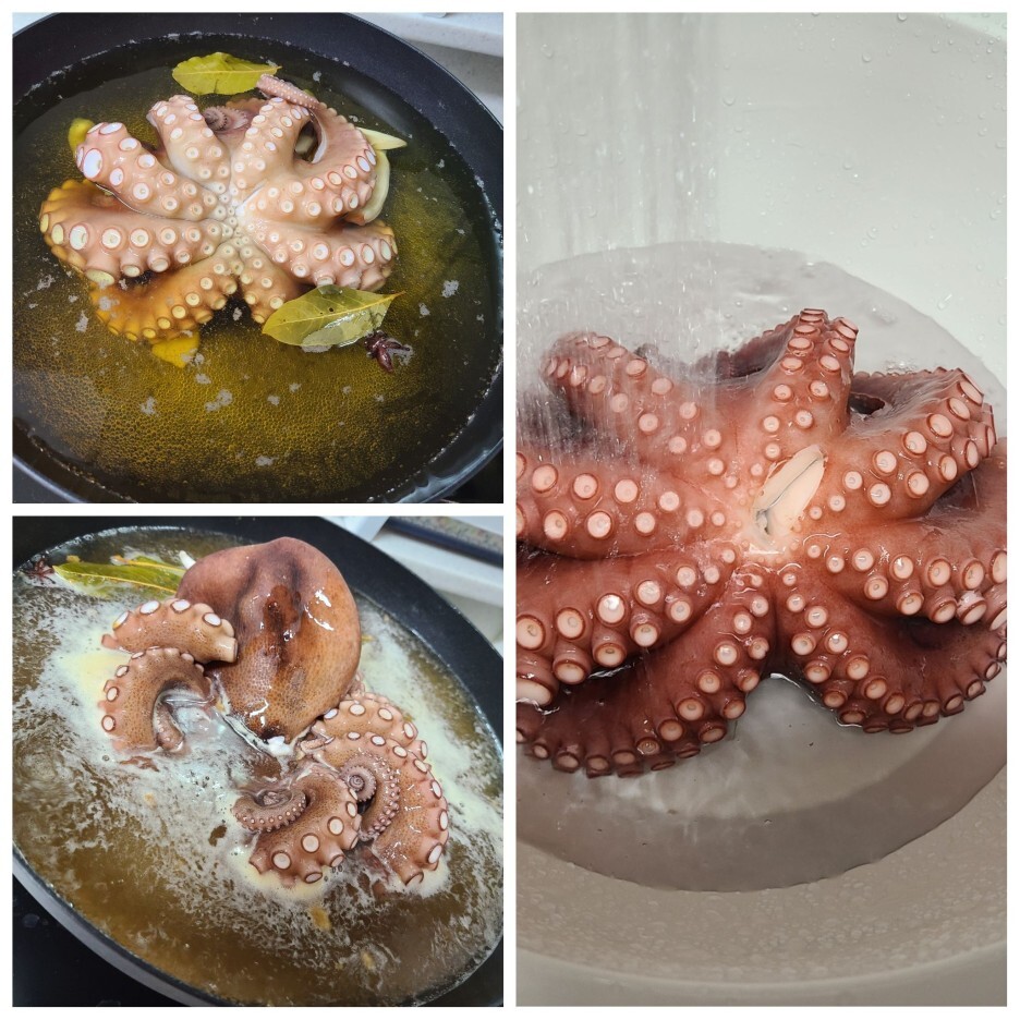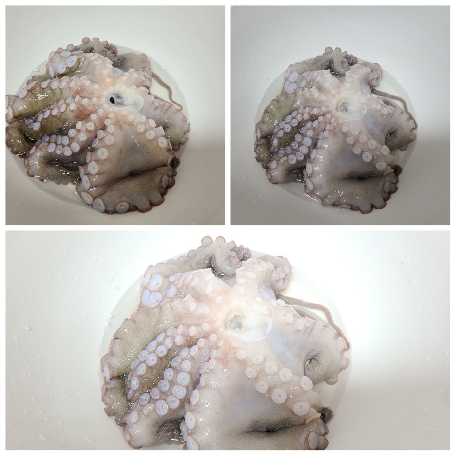 밀가루로 벅벅 문질러서 문어를 여러 번 빨아주세요.