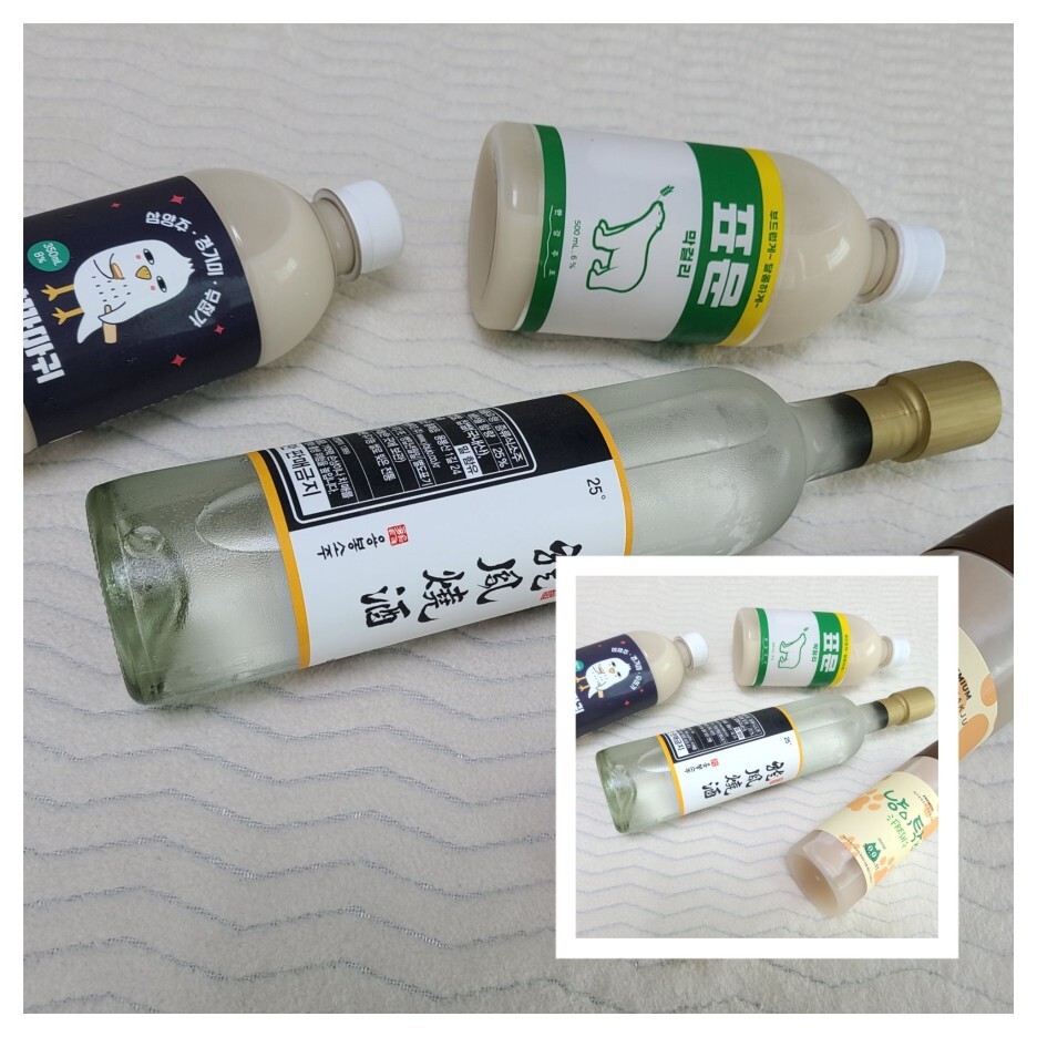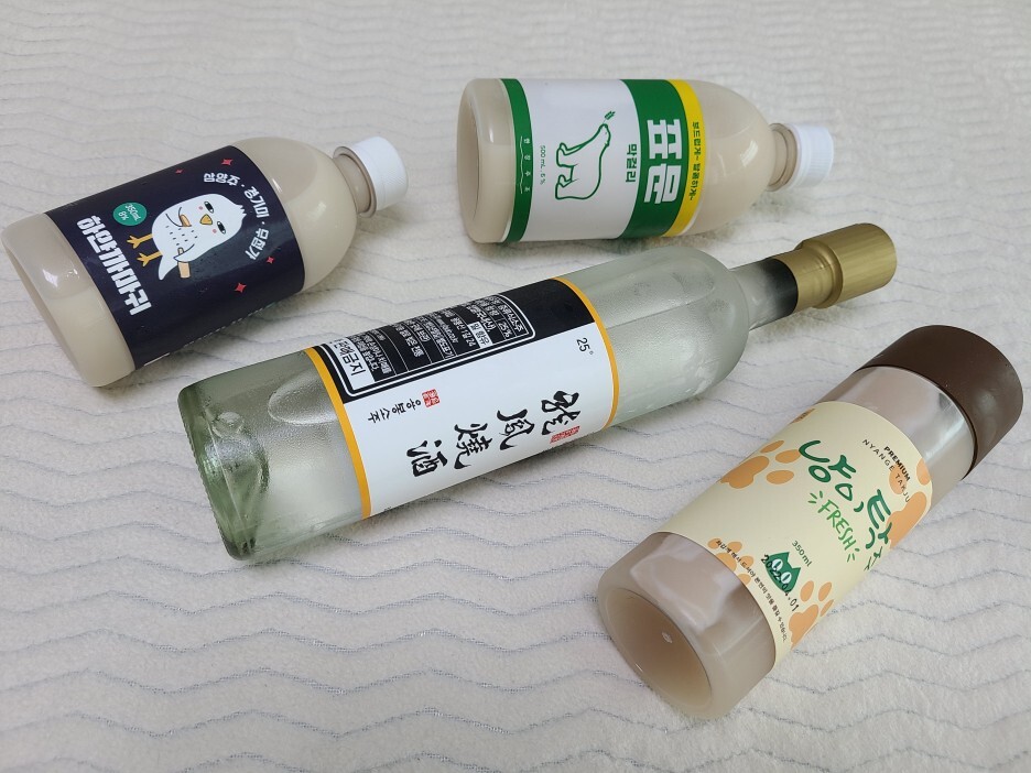 용봉25 500ml 25%, 냥이탁주 350ml 5%
