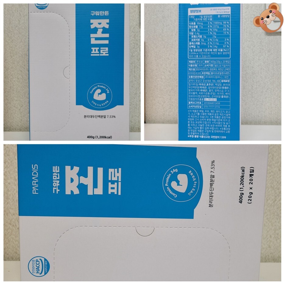 쫀드기 1봉(20g)에 단백질(3g)이 들어 있고