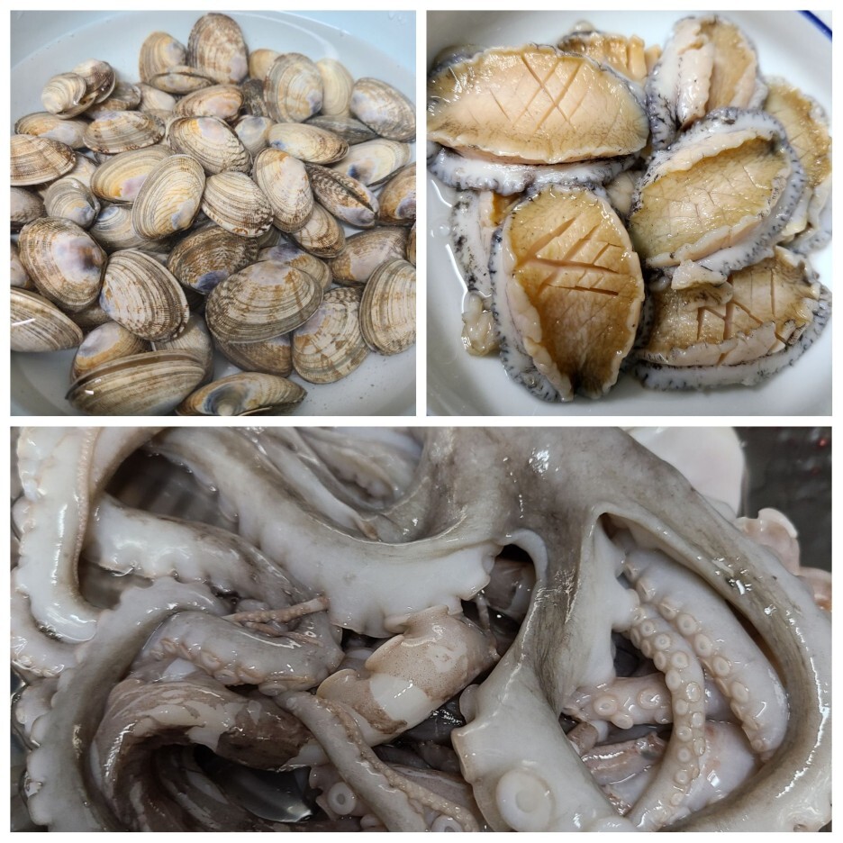 마트에 가서 전복이랑 바지락을 조금 사 왔습니다.