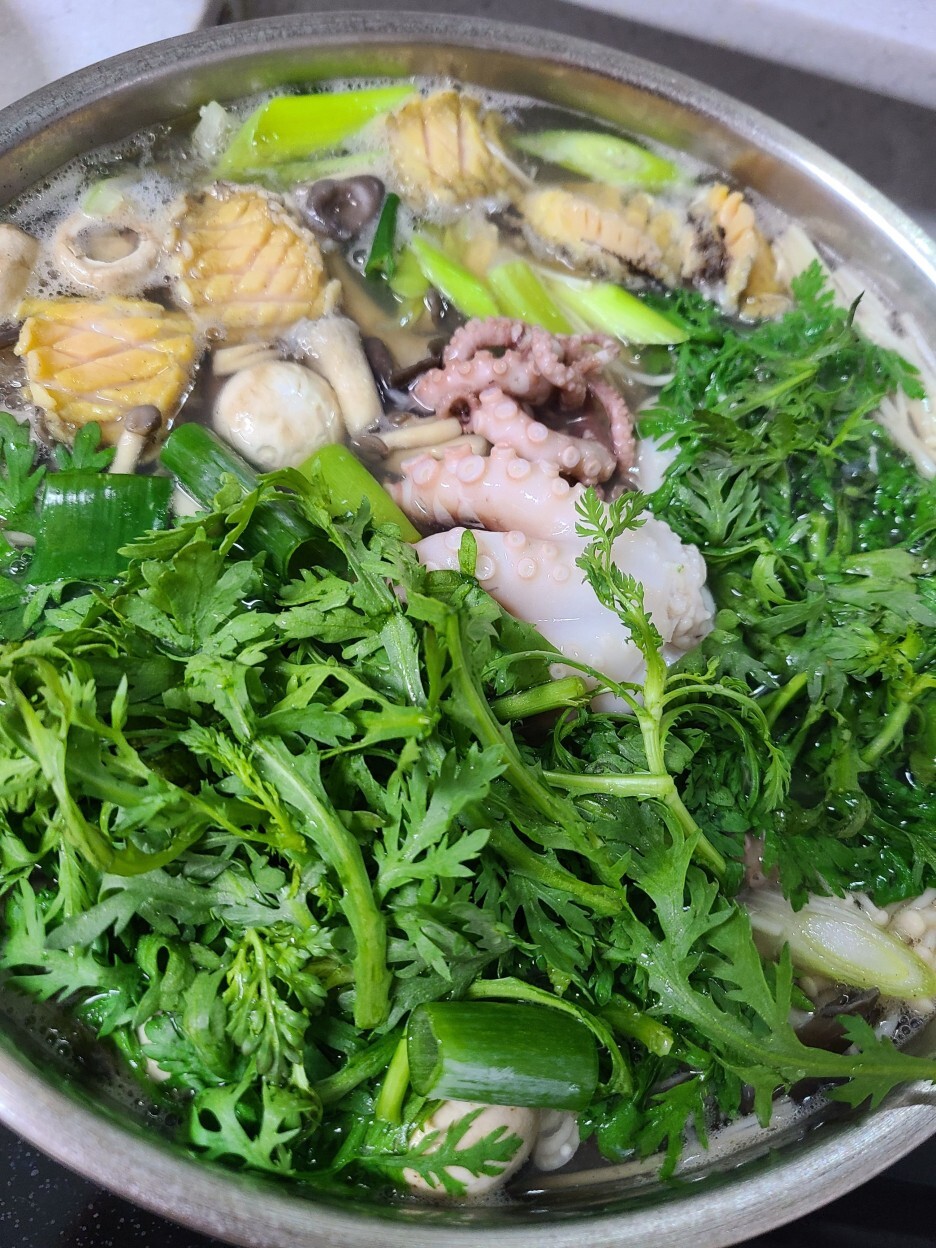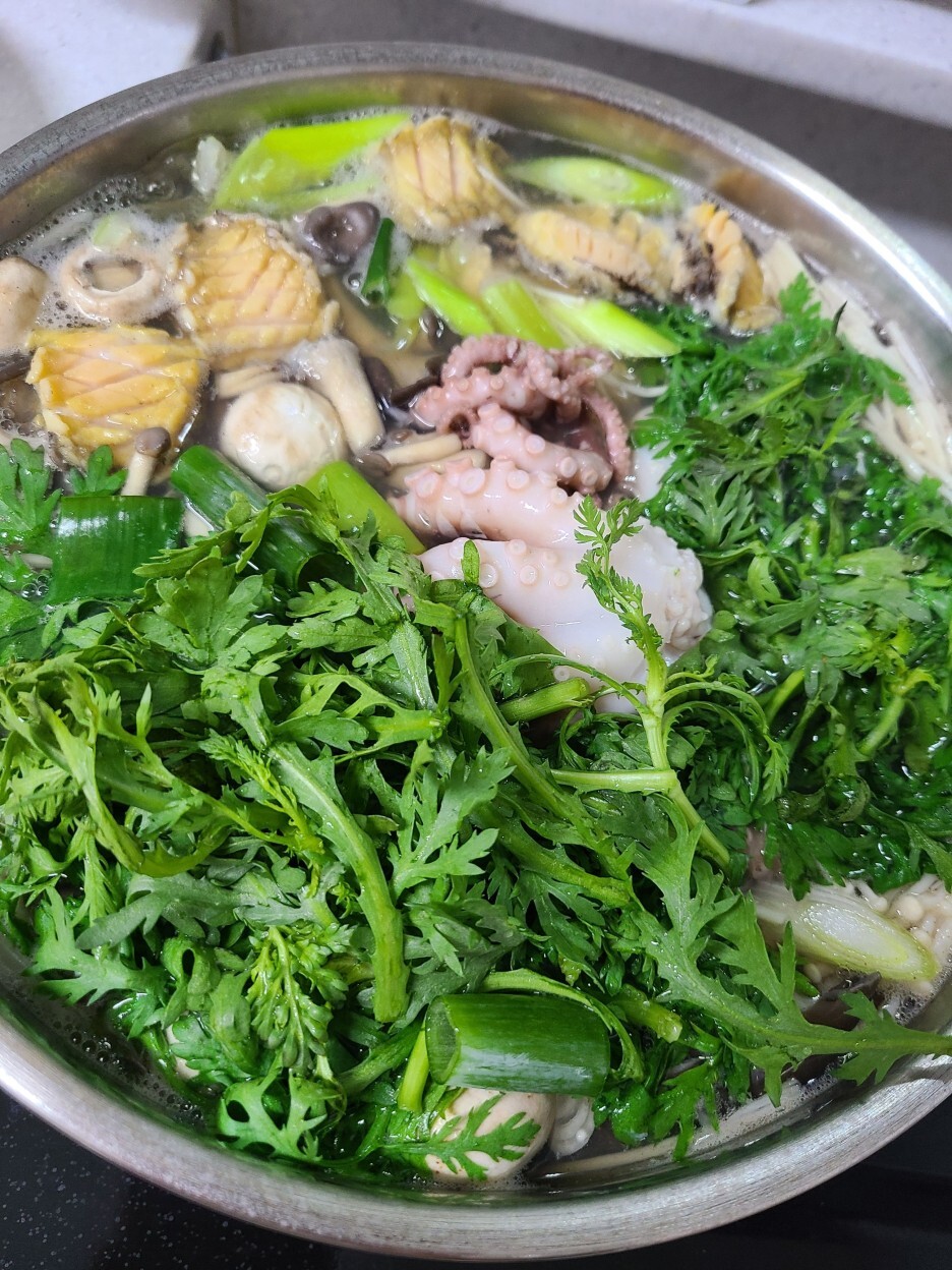 마지막으로 쑥갓을 넣고, 쑥갓이 풀이 죽으면 맛있게 먹어주세요~
