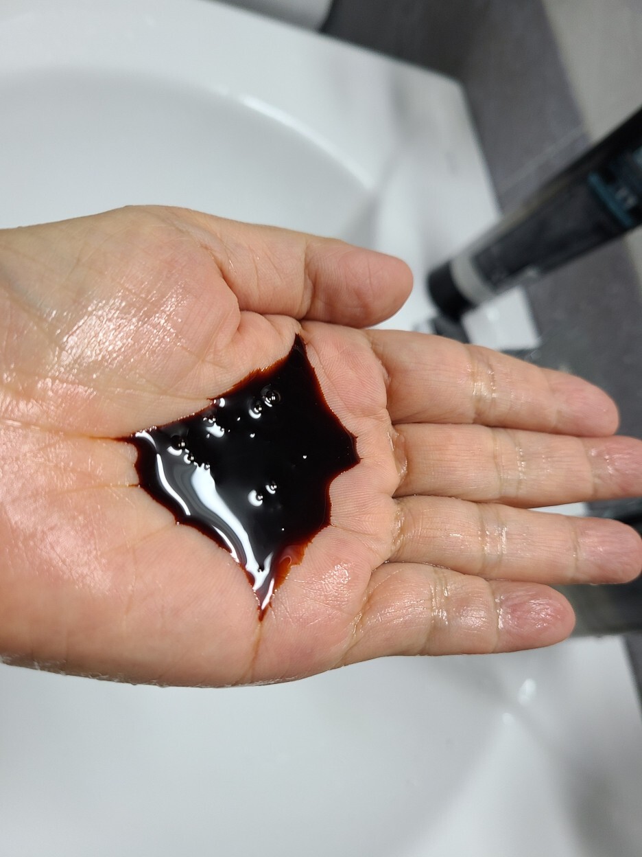 물:들임 샴푸로 한 번 감고 나오니까 사진처럼 모발 색이 변하네요.