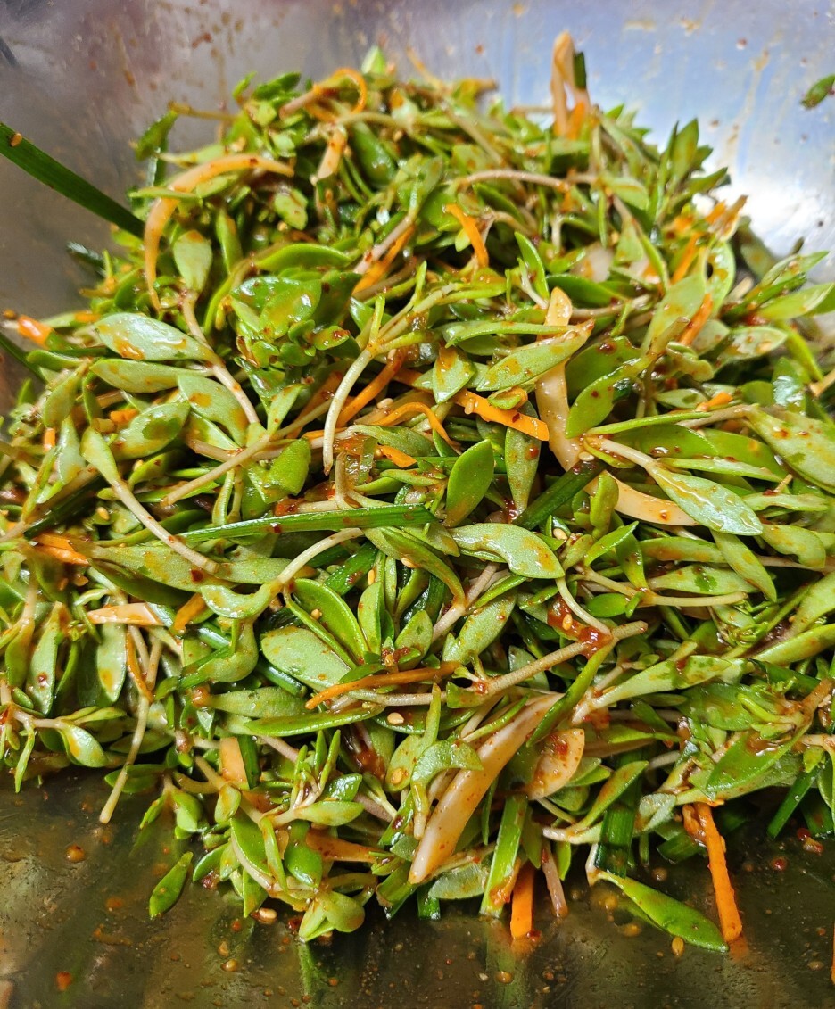 돌나물에 양념을 버무려 주면 돌나물무침 완성입니다.