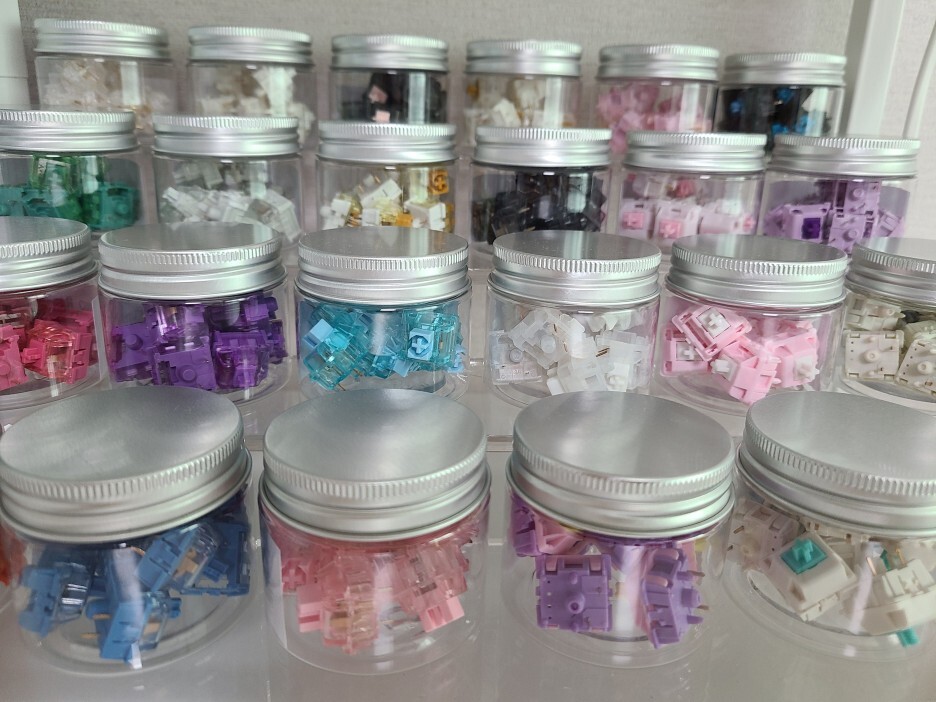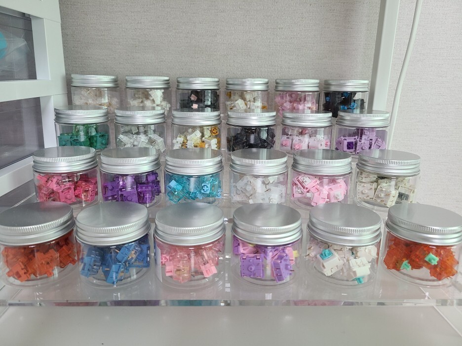키보드 스위치를 모아서 저렇게 병에 담아 모으고 있던걸
