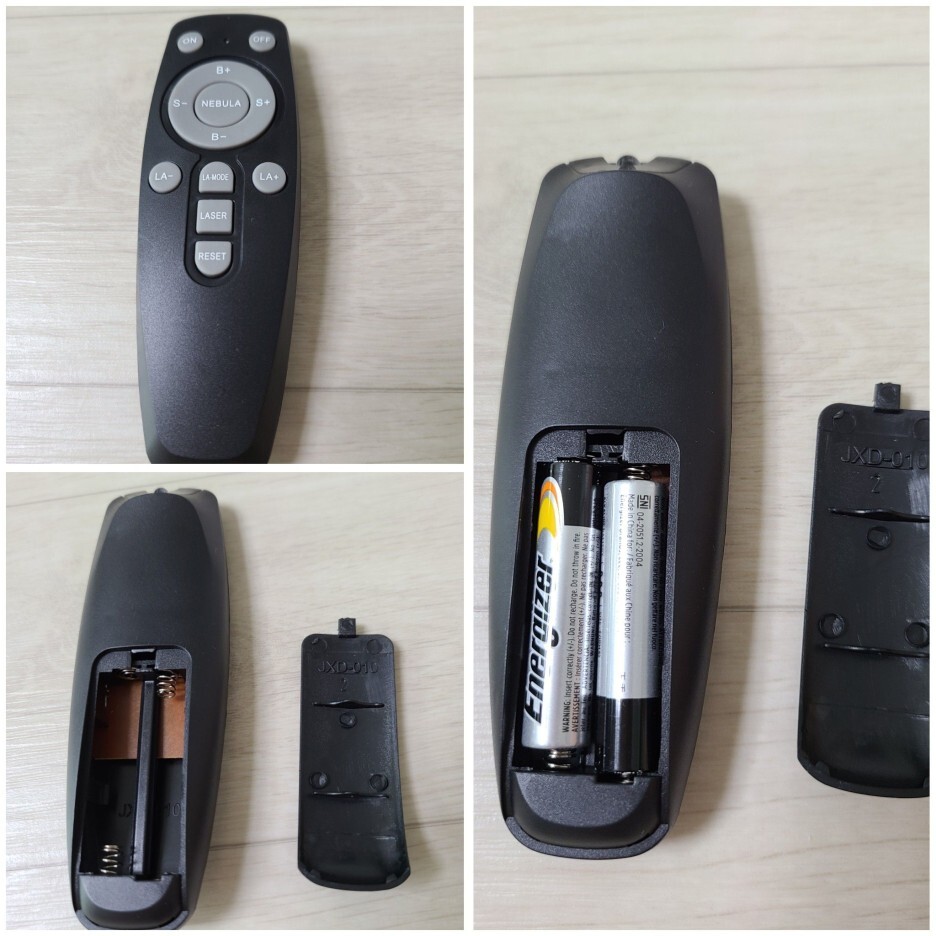 리모컨은 AAA 건전지 두 개가 들어갑니다.