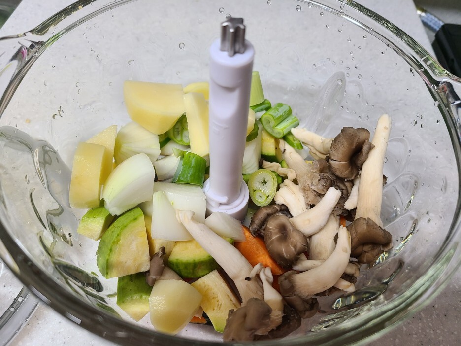 위에 버튼을 꾹꾹 눌러주면 5초 내로 채소를 다질 수가 있어요.