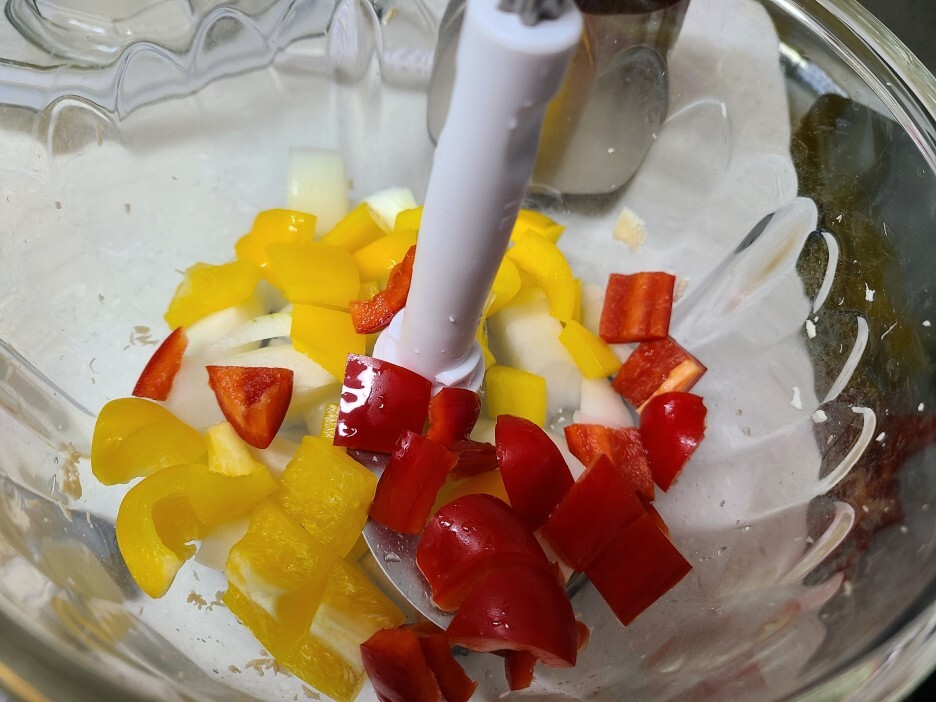 냉장고에 있던 야채들을 모두 모아서 짤스윙으로 갈아주었습니다.