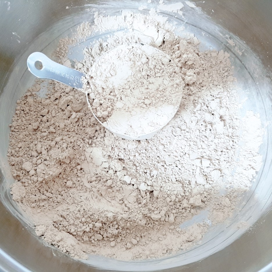계량컵으로 도토리가루 2컵과 물 10컵을 넣고 섞어줍니다.