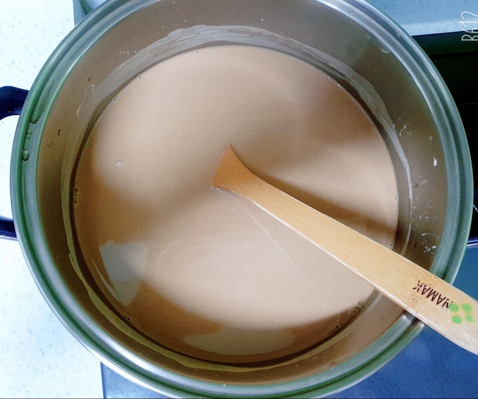 가스 불에서 끓을 때까지 저어주다가 끓기 시작하면 중불로 7~8분 더 익혀주고