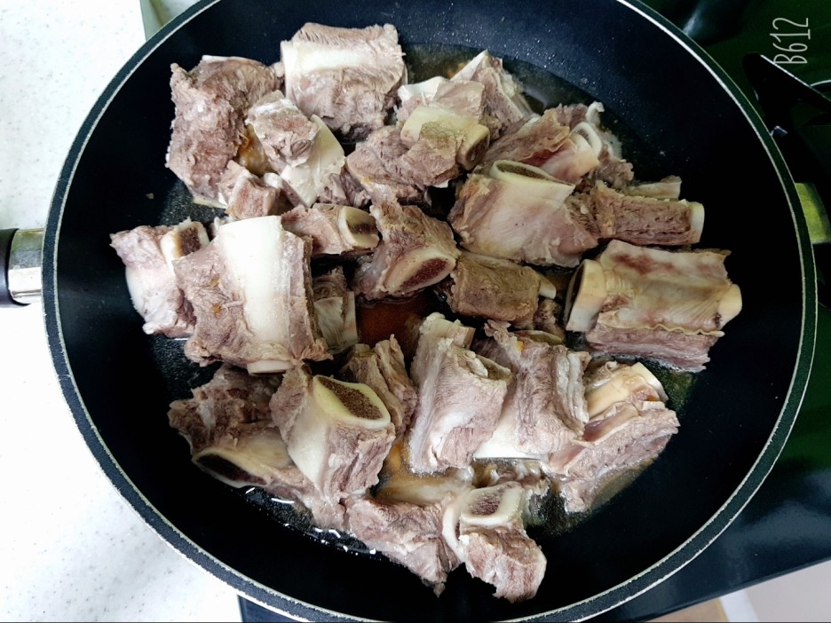 갈비에 물과 함께 양념을 20분 정도 조려줍니다.