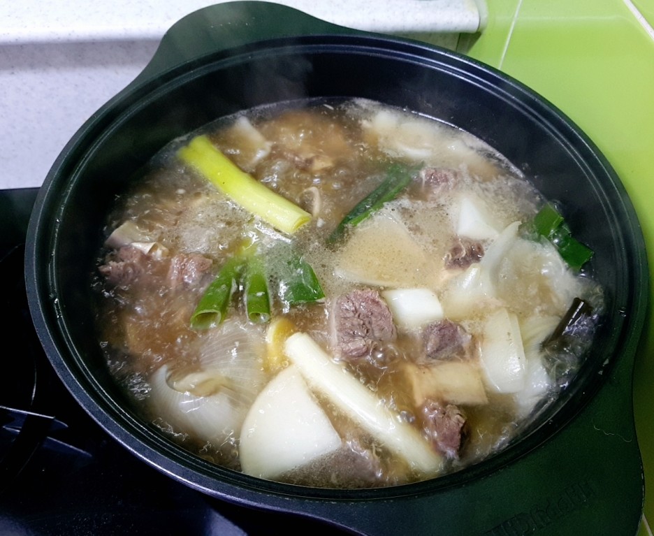 그리고서 중불에 40분 정도 끓여주고 갈비를 제외한 육수 재료를