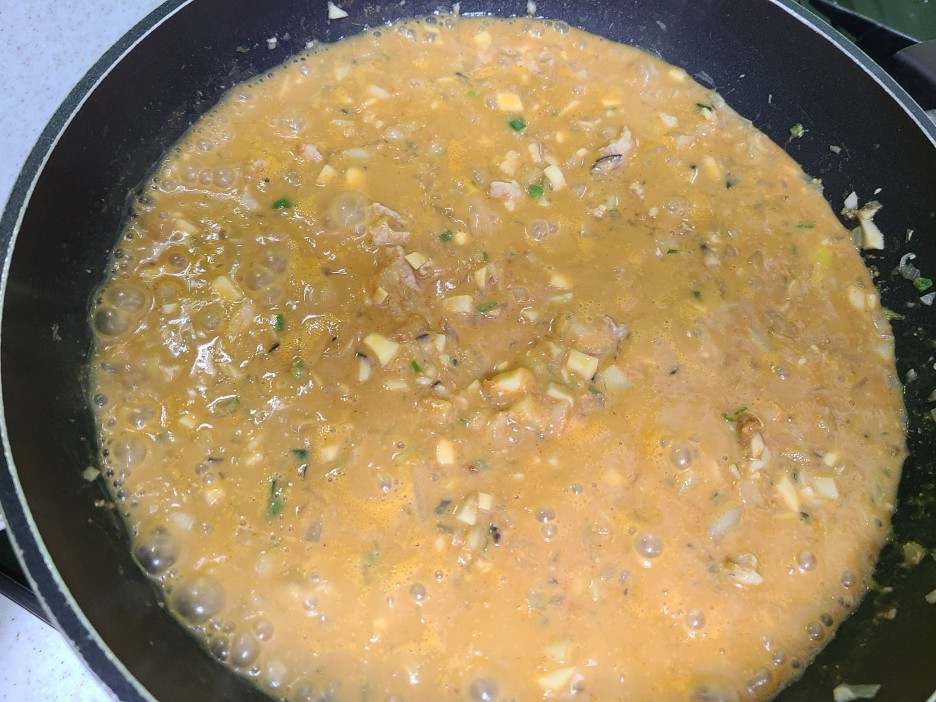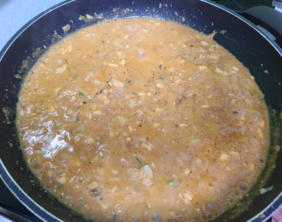 된장이 다 조려지면 불을 꺼주세요.