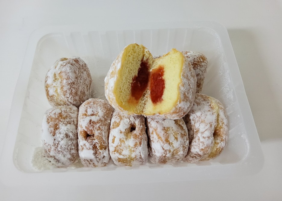 딸기 미니도넛은 딸기 필링이 정말 달고 맛있습니다.